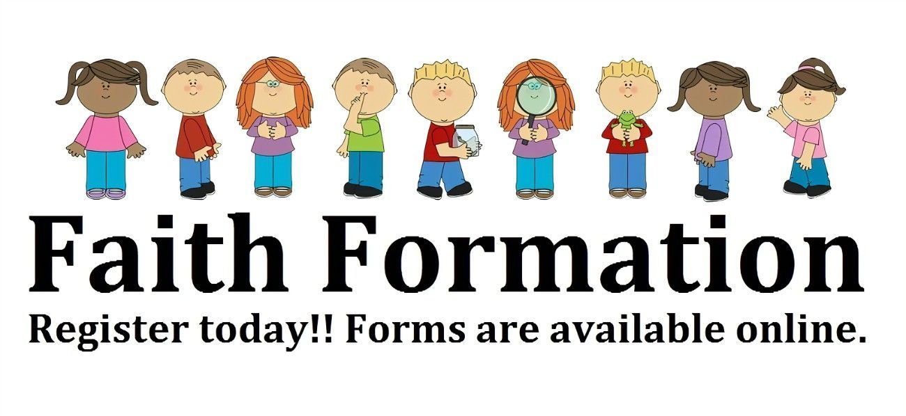 Registration for the 2026-2027 Faith Formation year is underway. Forms were emailed this past week to current Faith Formation families whose children have been participating in the program over this past year. However, we ask all families with children kindergarten through grade level 8 to register for Faith Formation. We look forward to working alongside your families in helping them grow strong in their faith. If you have a child ready to enter kindergarten or are new to the parish, please let us know so that we can be sure to get you on our registration list.
